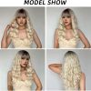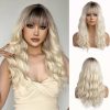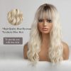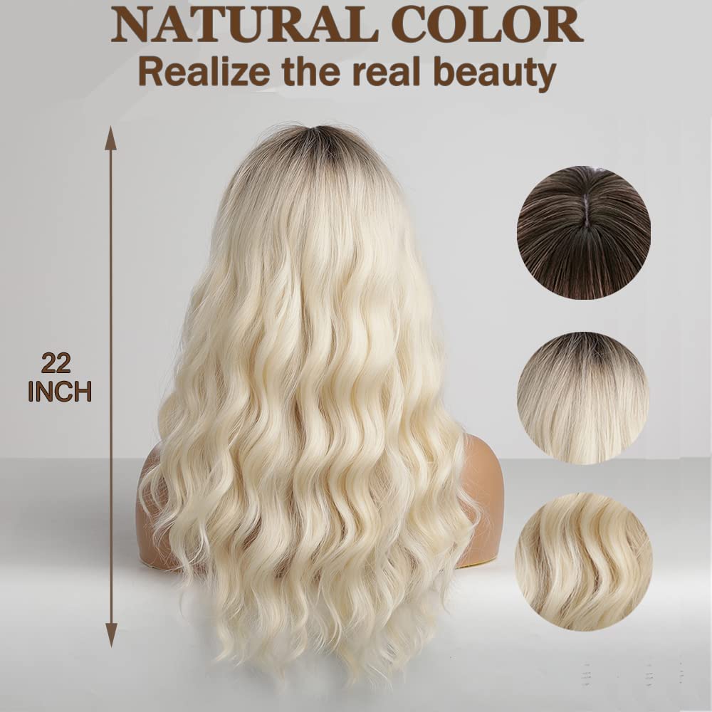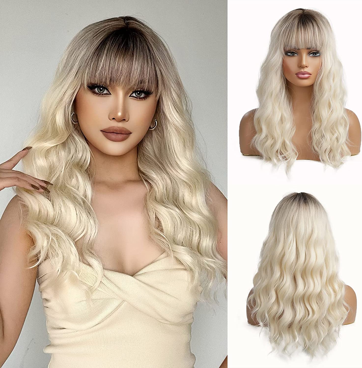 Write blonde corrugated platinum for woman synthetic hair, heat resistant, with bangs, for the daily party and the role play- 22 inches